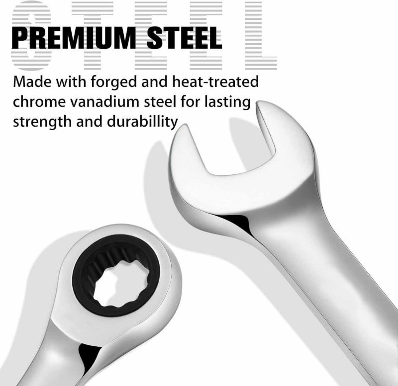 মেট্রিক স্টেইনলেস স্টীল র্যাচেট স্প্যানার সেটের জন্য মাত্র 5 ডিগ্রী প্রয়োজন, আঁটসাঁট জায়গায় আরও ভাল অ্যাক্সেসের জন্য একটি আশ্চর্যজনক সুইং আর্ক। এটি প্রায়শই উত্তোলন না করে আপনার কাজের দক্ষতা উন্নত করতে পারে।